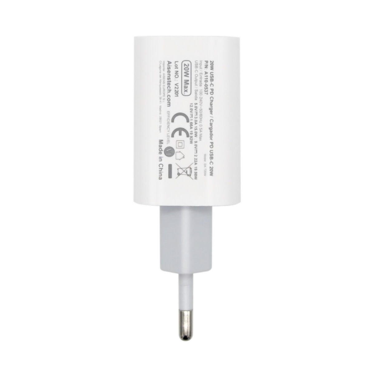 Si vous êtes passionné d'informatique et d'électronique, si vous êtes à la pointe de la technologie et qu'aucun détail ne vous échappe, achetez Chargeur mural Aisens A110-0537 Blanc au meilleur prix.Le chargeur mural Aisens A110-0537 est une solution polyvalente et efficace pour la recharge quotidienne des appareils électroniques, grâce à son connecteur USB-C assurant une compatibilité universelle avec une large gamme de smartphones, tablettes et autres appareils portables. Fabriqué en plastique résistant de couleur blanche, cet appareil allie durabilité et design discret et moderne, s’intégrant facilement dans tout environnement domestique ou professionnel. Sa capacité à fournir des tensions de 5 V et 12 V offre une flexibilité de charge, permettant d’alimenter en toute sécurité aussi bien des appareils classiques que des équipements nécessitant plus de puissance. La sortie 20W via USB Type-C permet une charge rapide et efficace, idéale pour les utilisateurs souhaitant réduire le temps d’attente sans compromettre la sécurité de leurs appareils, le tout soutenu par la fiabilité reconnue de la marque Aisens. Ce chargeur est particulièrement utile pour ceux qui recherchent une source d’énergie compacte et universelle, facilitant la recharge à la maison comme en déplacement. En résumé, l’Aisens A110-0537 est un choix pratique et fonctionnel pour ceux qui ont besoin d’un accessoire de charge robuste, compatible et performant au quotidien.