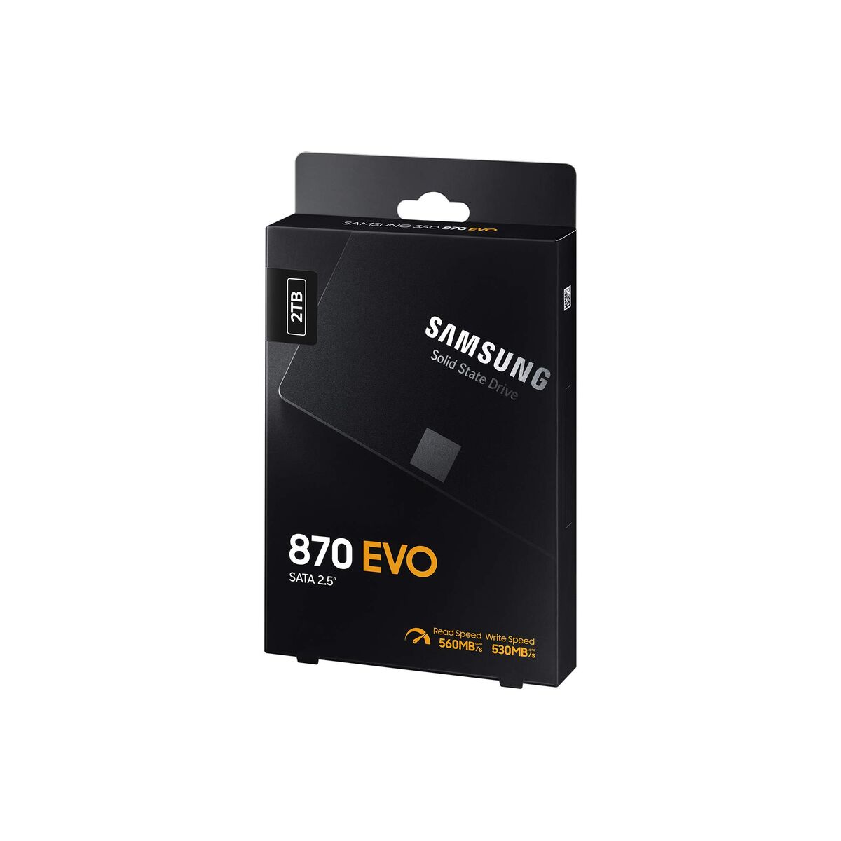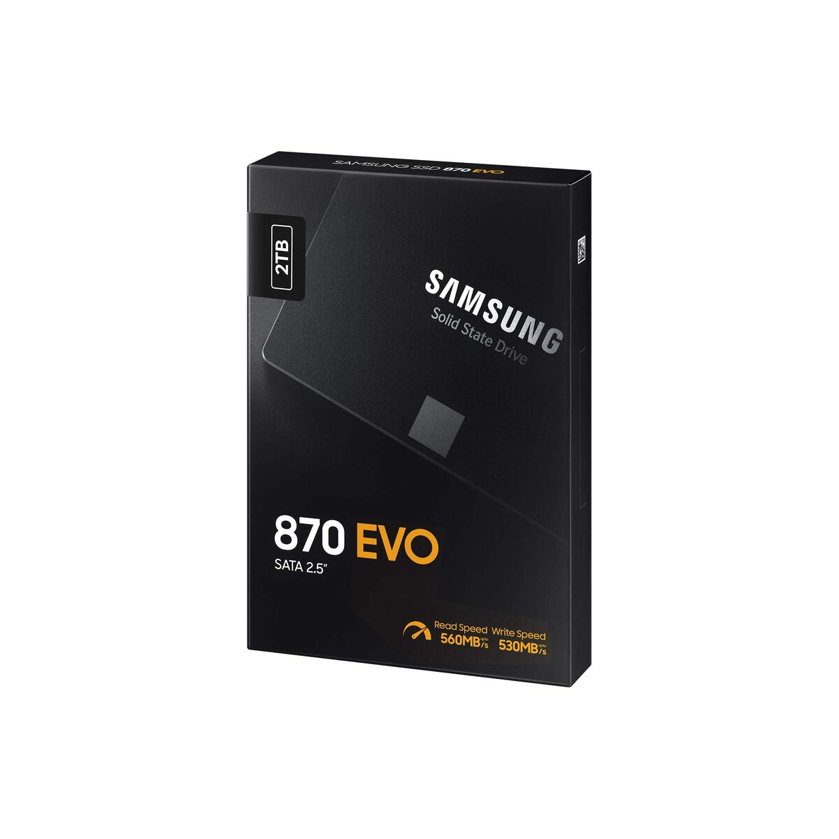 Samsung 870 EVO. Capacité du Solid State Drive (SSD): 2000 Go, Facteur de forme SSD: 2.5", Vitesse de lecture: 560 Mo/s, Vitesse d'écriture: 530 Mo/s. Couleur du produit: Noir