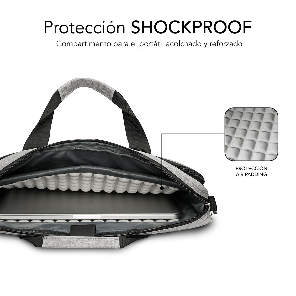 La mallette pour ordinateur portable Subblim SUB-LB-4APLB10 est conçue pour offrir une solution de transport polyvalente, sûre et résistante pour les appareils jusqu’à 15,6 pouces, alliant fonctionnalité avancée et protection renforcée dans un format compact et élégant. Fabriquée en polyester haute densité et grande durabilité (600D) de couleur grise, cette mallette se distingue par sa résistance à l’eau, sa protection contre les chocs, la poussière et les rayures, ainsi qu’une excellente capacité à repousser la saleté, ce qui en fait un choix fiable pour les trajets quotidiens comme pour les voyages d’affaires. Elle intègre un système exclusif de rembourrage Air Padding à bulles qui enveloppe le compartiment principal, offrant une protection optimale contre les chutes et les chocs accidentels. Son design toploader facilite l’accès à l’ordinateur portable, tandis que l’intérieur est soigneusement agencé avec trois compartiments indépendants et divers pochettes pour organiser documents, téléphone portable, clés, stylos, câbles, clés USB et autres accessoires essentiels. La poche frontale de grande capacité comprend un organiseur élastique et en maille pour garder les objets rangés et accessibles. Dotée d’une poignée de transport ergonomique, d’une bandoulière réglable et amovible et d’une sangle arrière compatible avec trolley, elle assure un confort total lors de tous vos déplacements. Le système de double fermeture éclair robuste ajoute une sécurité supplémentaire et facilite l’ouverture, tandis que son poids léger de seulement 410 grammes et son format compact (44 x 34 x 6 cm) permettent un transport aisé sans charge superflue. S’ajoutent des détails comme le porte-stylo et l’utilisation de matériaux qui garantissent une longue durée de vie même dans des conditions exigeantes. La mallette pour ordinateur portable Subblim SUB-LB-4APLB10 est un choix pratique et résistant, parfaitement adaptée aux professionnels et utilisateurs recherchant une protection complète et une organisation efficace en mobilité.