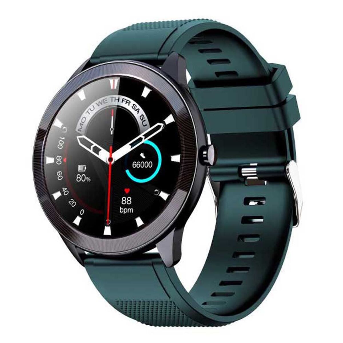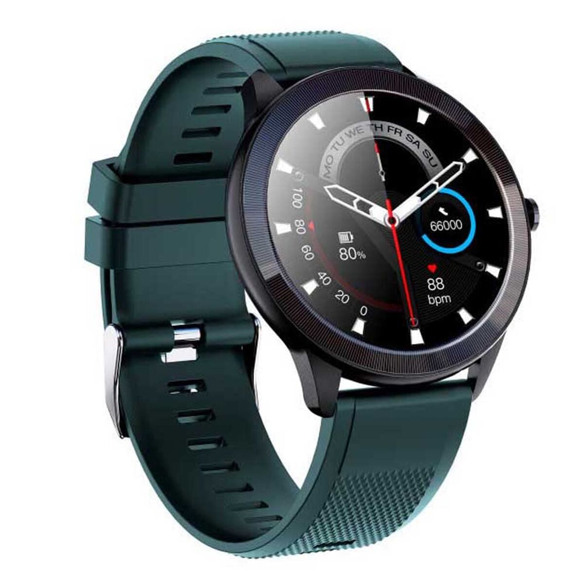 Si vous êtes passionné d'informatique et d'électronique, si vous êtes à la pointe de la technologie et qu'aucun détail ne vous échappe, achetez Montre intelligente LEOTEC LESW32V Noir Vert 1,28" 200 mAh au meilleur prix.La LEOTEC LESW32V est une smartwatch polyvalente et robuste conçue pour ceux qui souhaitent suivre leur activité quotidienne et sportive avec précision et confort. Ce modèle se distingue par son écran tactile IPS couleur de 1,28" avec une résolution de 240 x 240 pixels, offrant une visibilité nette même en mouvement. Disponible en noir et vert, la montre dispose d’un bracelet en silicone léger et amovible, adapté à différents poignets pour un port confortable toute la journée. Son boîtier rond de 32 mm et son poids de 42 grammes la rendent idéale pour le sport comme pour un usage quotidien. Elle bénéficie d’une protection IP68, assurant une grande résistance à l’eau, à la poussière, aux chocs et aux rayures, pour une utilisation sans souci dans des conditions difficiles. L’appareil intègre des capteurs optiques pour la surveillance cardiaque avec mesure automatique et manuelle, ainsi que la mesure de l’oxygène sanguin, un podomètre, le calcul des calories brûlées, la distance parcourue et le suivi multidisciplinaire de l’activité physique. Il permet aussi le suivi de la qualité du sommeil et la définition de objectifs personnels pour améliorer le bien-être. La connectivité Bluetooth 5.0 assure une synchronisation rapide avec Android et iOS, recevant des notifications intelligentes, alertes antivibrations et la possibilité de contrôler à distance la prise de photos ou la lecture audio depuis le téléphone. Sa batterie de 200 mAh en polymère de lithium offre une bonne autonomie et se recharge facilement via un connecteur magnétique. La LEOTEC LESW32V est un choix pratique et équilibré pour ceux qui recherchent une smartwatch solide, fonctionnelle et au design moderne, adaptée au sport comme à l’usage quotidien.