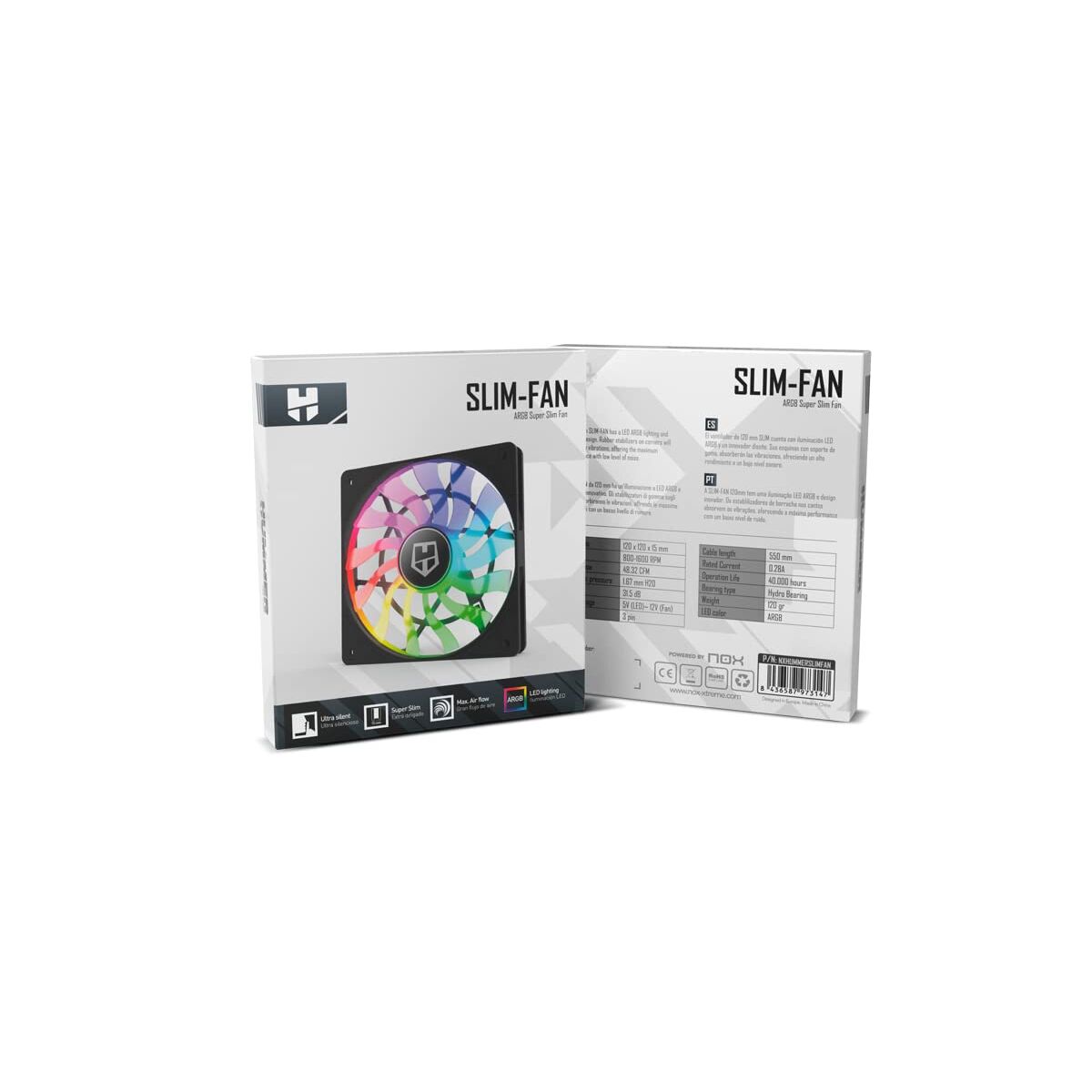 Si vous êtes passionné d'informatique et d'électronique, si vous êtes à la pointe de la technologie et qu'aucun détail ne vous échappe, achetez Ventillateur de cabine Nox-Xtreme SLIM FAN Ø 12 cm (1 Unité) au meilleur prix.Le ventilateur de boîtier SLIM FAN de la marque Nox-Xtreme est un appareil conçu pour offrir un refroidissement efficace et silencieux dans des environnements de bureau ou des installations intérieures. Ce ventilateur interne se distingue par sa taille compacte de 12 cm, fournissant un flux d’air optimal dans des espaces réduits ou sur des composants électroniques nécessitant une ventilation constante. Fabriqué en plastique noir, il allie résistance et légèreté, facilitant son montage et sa durabilité. Parmi ses caractéristiques techniques clés, il fonctionne sous une tension de 12 V, garantissant la compatibilité avec les alimentations standards des systèmes informatiques et équipements électroniques demandant une ventilation supplémentaire. De plus, il intègre la technologie ARGB permettant un éclairage personnalisable avec effets lumineux, valorisant esthétiquement toute configuration et offrant un avantage par rapport aux ventilateurs standards. Son design de « ventilateur de bureau » convient aussi bien à un usage domestique que professionnel, facilitant son installation dans des boîtiers requérant une circulation d’air continue pour éviter la surchauffe. En somme, le Ventilateur Nox Slim Fan allie fonctionnalité, efficacité et options d’éclairage, se positionnant comme une solution polyvalente pour maintenir une température adéquate dans les appareils électroniques sans sacrifier style ni espace.